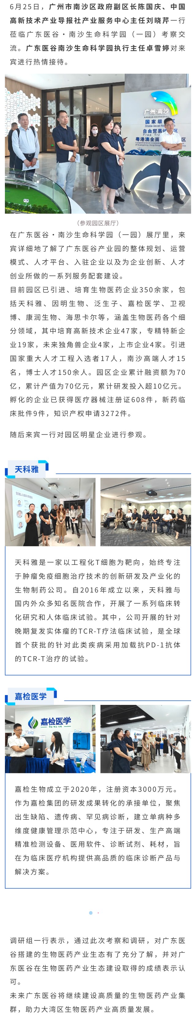 廣州市南沙區(qū)政府副區(qū)長(zhǎng)陳國慶、中國高新技術(shù)產(chǎn)業(yè)導(dǎo)報(bào)社產(chǎn)業(yè)服務(wù)中心主任劉曉芹一行蒞臨廣東醫(yī)谷考察交流