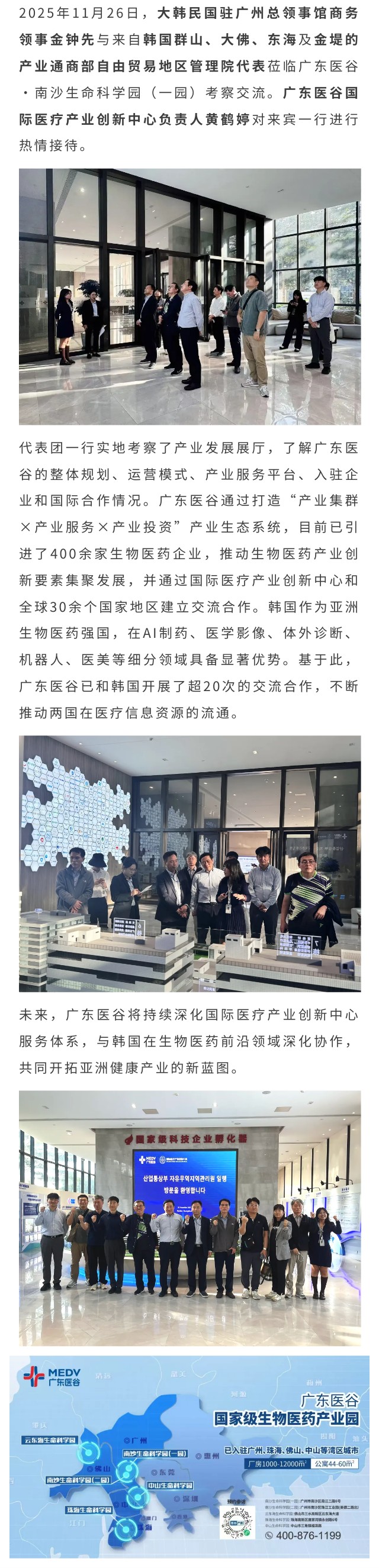 韓國產(chǎn)業(yè)通商部自由貿(mào)易地區(qū)管理院一行蒞臨廣東醫(yī)谷考察交流