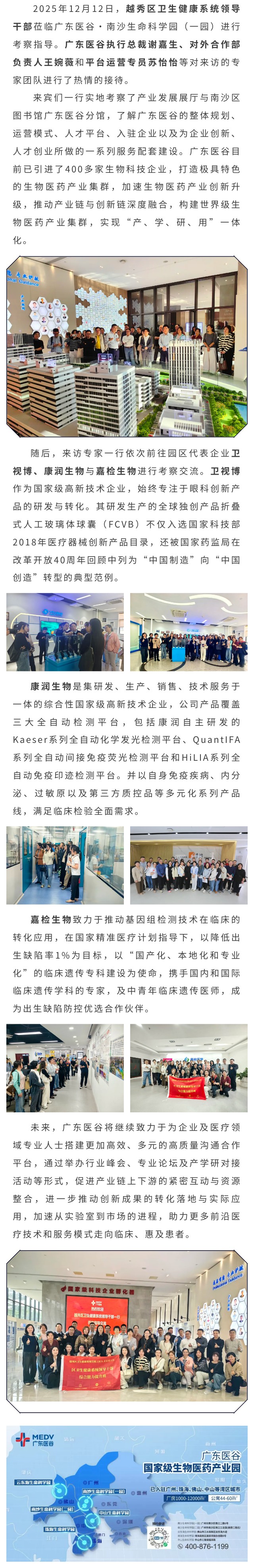 越秀區(qū)衛(wèi)生健康系統(tǒng)領(lǐng)導(dǎo)干部一行蒞臨廣東醫(yī)谷考察調(diào)研
