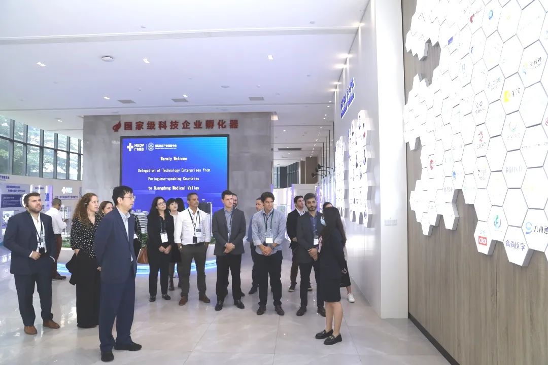 5月14日,葡語國家科創(chuàng)企業(yè)高層一行蒞臨廣東醫(yī)谷?南沙生命科學(xué)園(一園)考察交流,廣東醫(yī)谷國際醫(yī)療產(chǎn)業(yè)創(chuàng)新中心商務(wù)運營主管黃鶴婷對來賓進(jìn)行熱情接待。